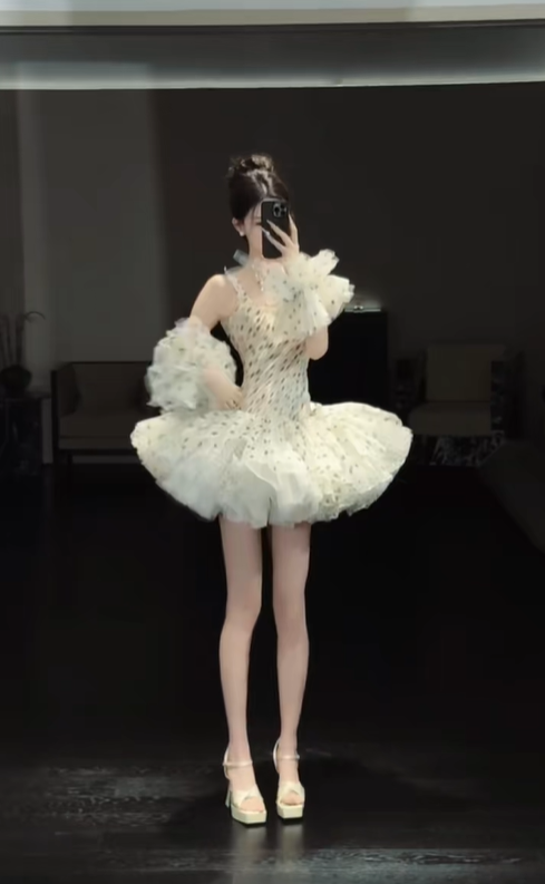 White suspenders, slim waist, flower bud skirt, short skirt, homecoming dress R4466