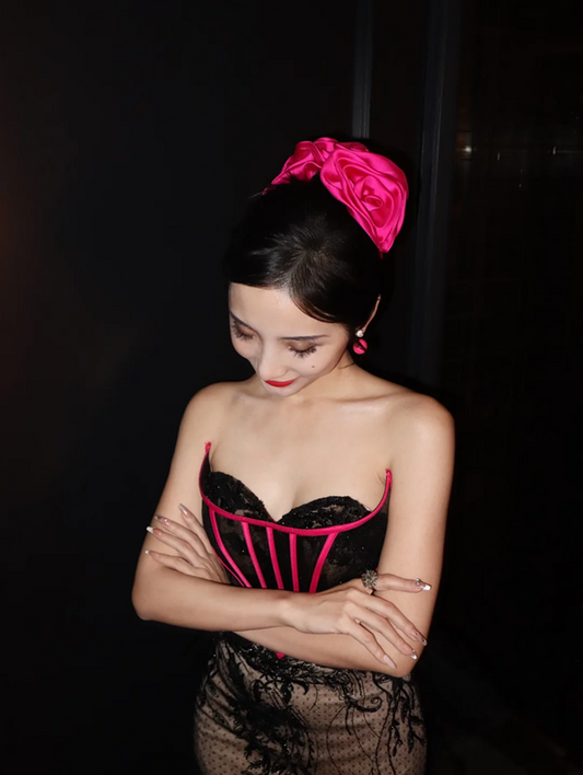 Black lace strapless fitted waist bodycon sexy long ball gown R6415