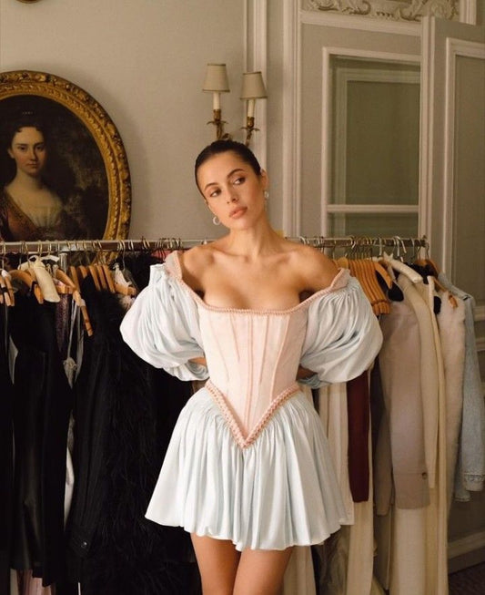 White simple A-line skirt with puffy hem homecoming dress R2431