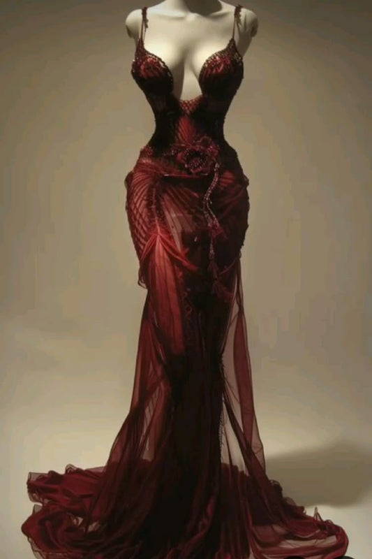Sexy Burgundy Long Prom Evening Dresses S7124