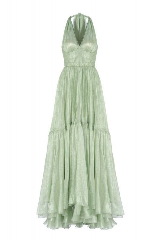 A Line V Neck Sleeveless Green Long Evening Prom Dresses S7107