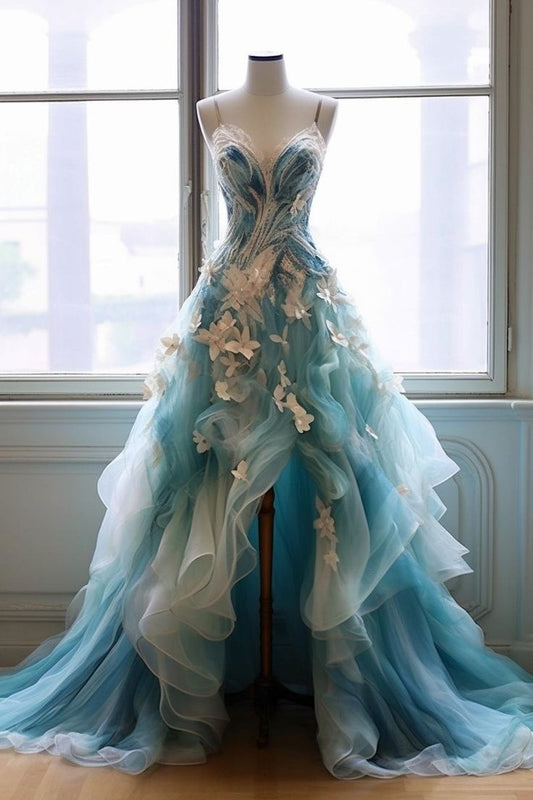 A Line Tulle Ball Gown Formal Dress,High Low Evening Gowns S7098