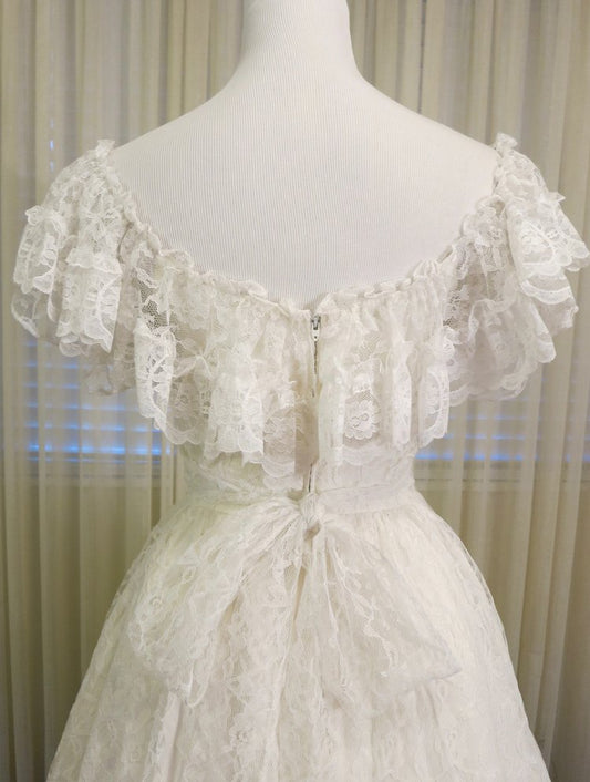 Vintage Off Shoulder Lace Wedding Dress Modest Princess Bridal Gown S7094