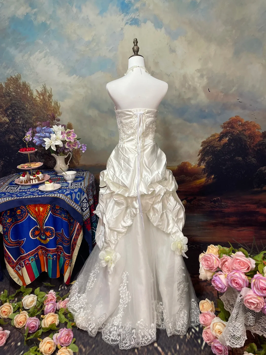 A Line White Vintage Long Wedding Dresses Princess Bridal Gown S6874