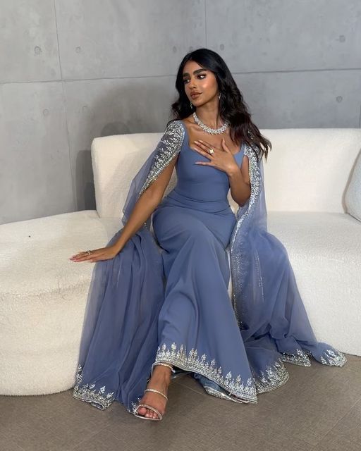 Cape Sleeves Luxury Evening Dresses Women Elegant Long Formal Prom Dress S6822