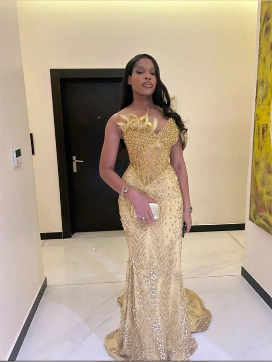Gold Mermaid Evening Dresses, Women Elegant Long Formal Prom Dress S6823