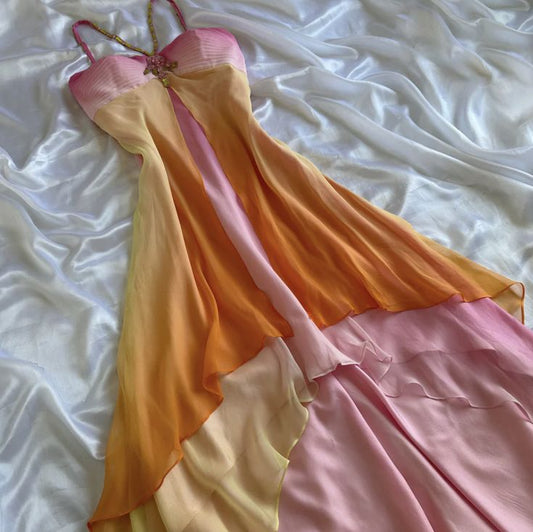 High Low Straps Ombre Chiffon Prom Dresses Evening Dress With Beads S6212