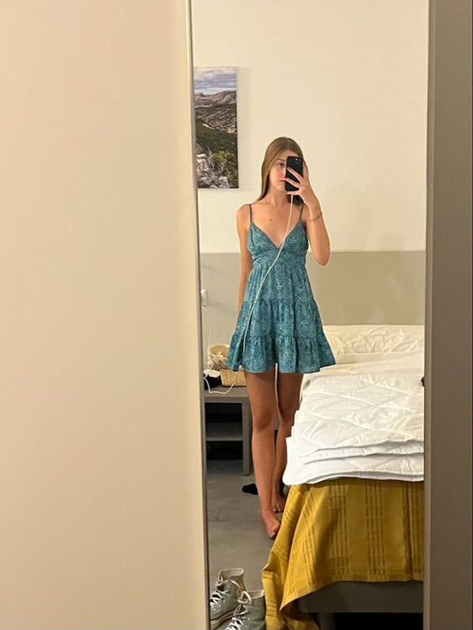 Cute Chiffon Floral Print Prom Dress Senior Evening Gown S5292