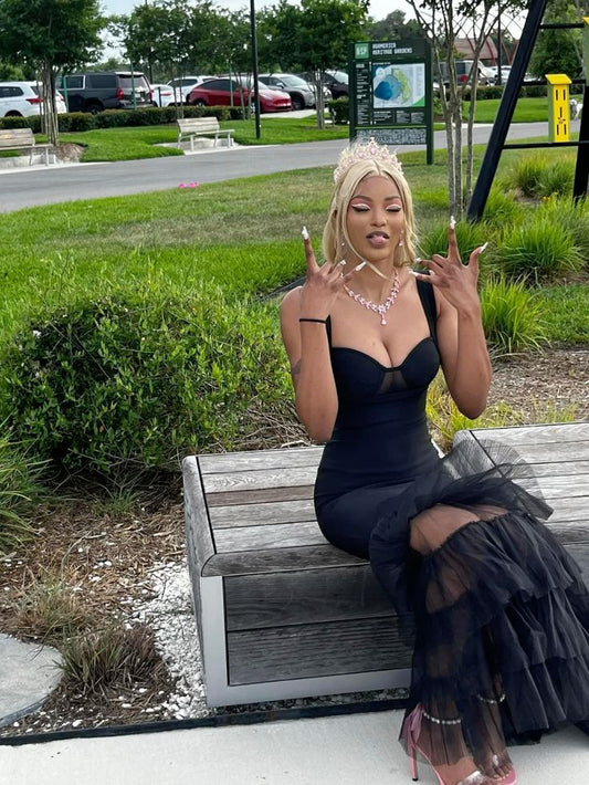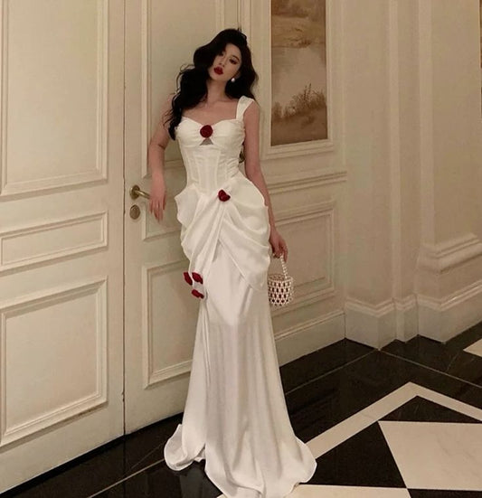 ROSE FLOWER SUSPENDER PLEATED MAXI DRESS S5280