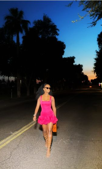 Pink suspender tie waist slim flower bud skirt short skirt homecoming dress R5467