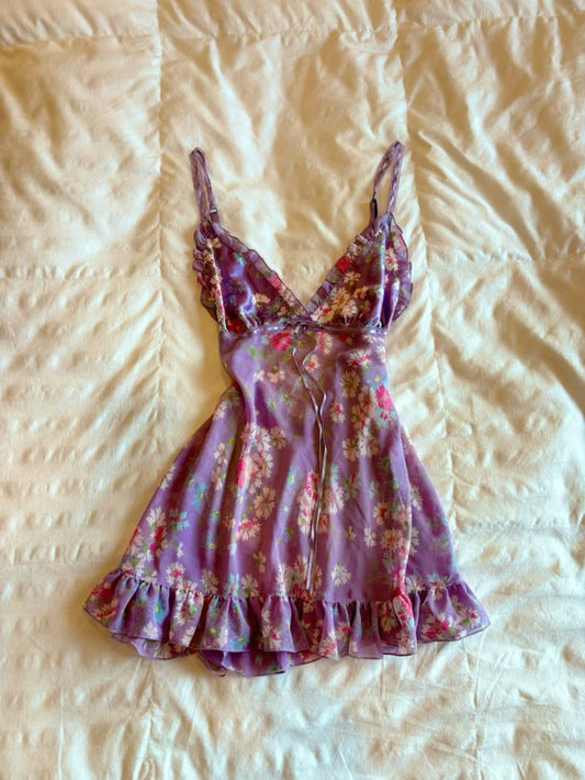 Purple floral suspenders slim waist mini skirt homecoming dress R2626
