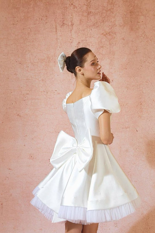 White princess skirt bubble sleeve slim cute butt homecoming dress R2501