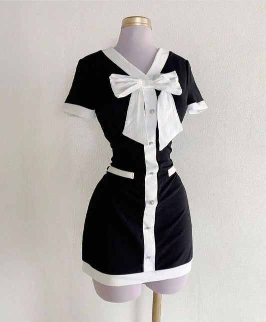 Black short skirt V-neck bow slim skirt homecoming dress R2509