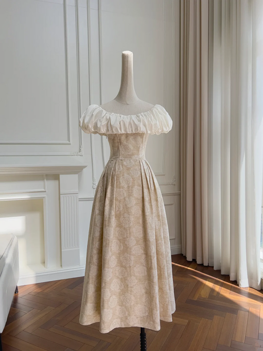French design pastoral style printed slim fishbone corset dress homecoming dress R5163