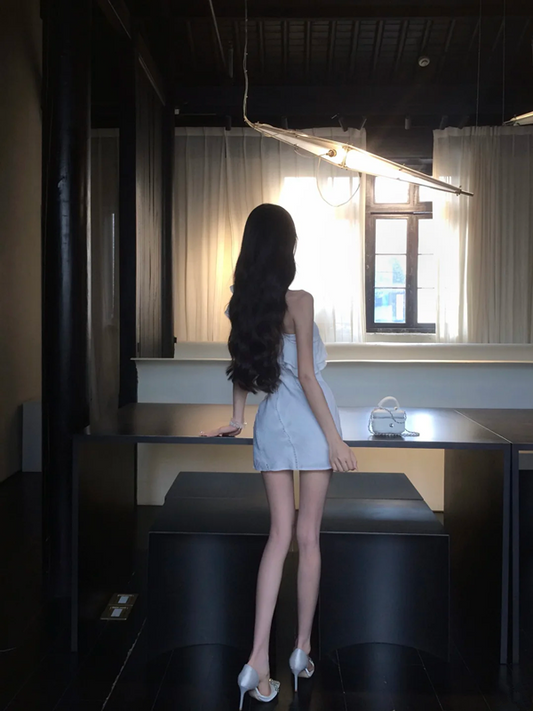 White Strapless Satin Waist Slim A-Line Short Skirt Homecoming Dress R5050