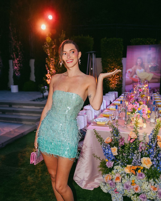Green sequined tube top waist slim hip skirt homecoming dress R5567