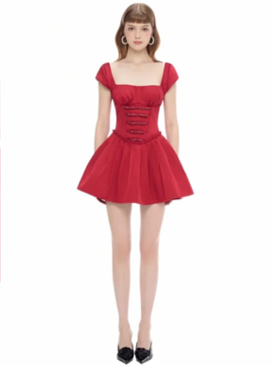 Red suspenders slim waist sexy A-line skirt short skirt homecoming dress R4442