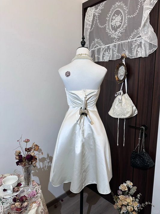 White satin tube top waist slim hip sexy design short skirt homecoming dress R4366
