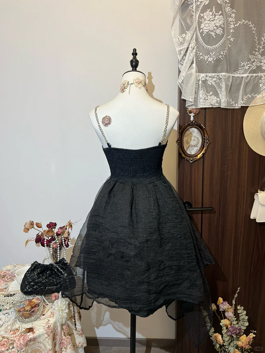 Black suspender waist cake skirt short skirt homecoming dress R4354