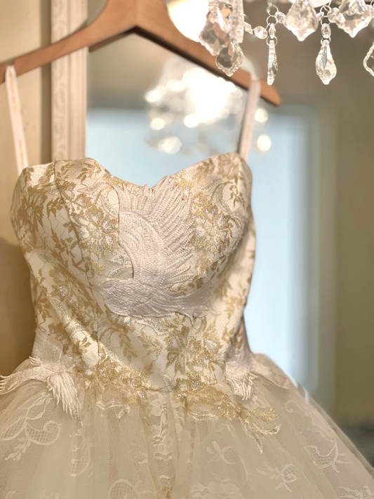 White tube top waist slim embroidery beautiful cake layer tulle skirt princess skirt homecoming dress R4327