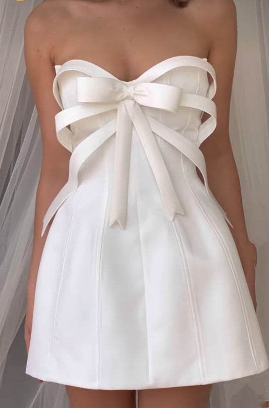 Pink tube top neckline bow design waist slim short skirt homecoming dress R3731