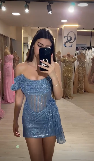 Blue tube top waist fish bone top sexy short skirt homecoming dress R5481