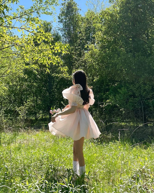Pink Puff Sleeve Waist Slim Princess Miniskirt Homecoming Dress R5483