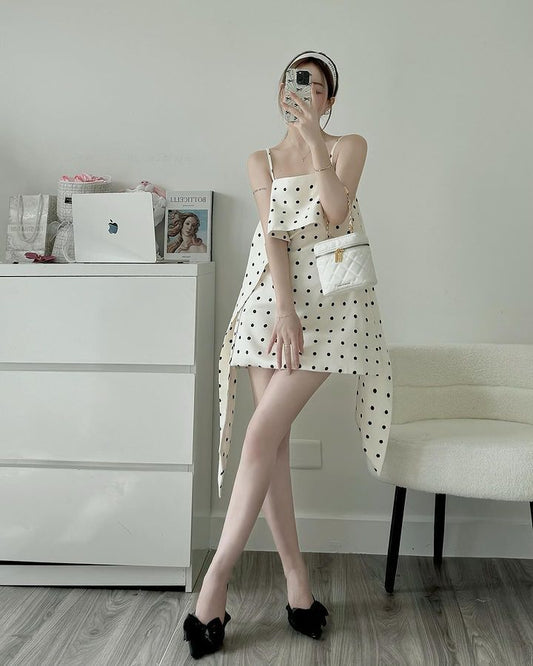 White polka dot suspenders loose short skirt homecoming dress R3473