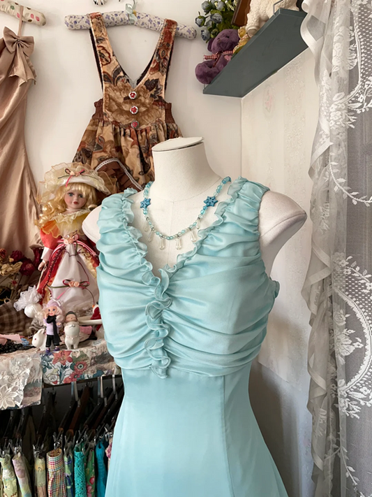 Light green sleeveless fitted satin long dress, ball gown R6336