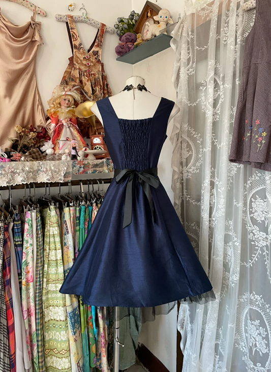 Navy blue sleeveless fitted A-line mini ball gown R6332