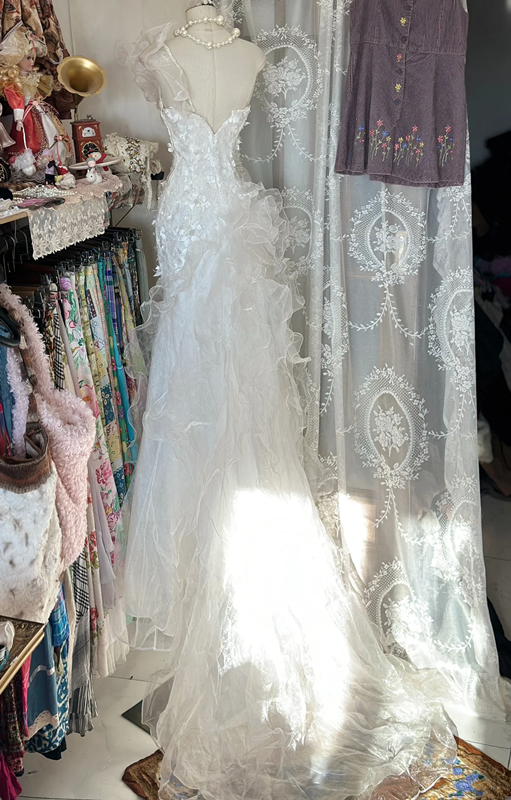 Tank top, fitted A-line lace mini skirt, ball gown R6269