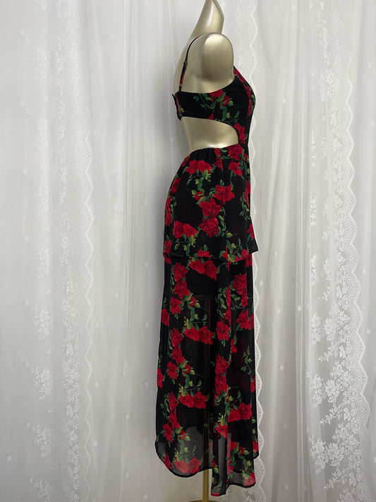 New long chiffon floral suspender dress for women summer vacation retro long party dress S5768