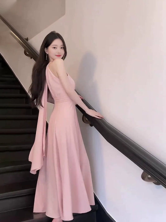 Pink sleeveless halter dress for women long dress S5779