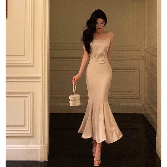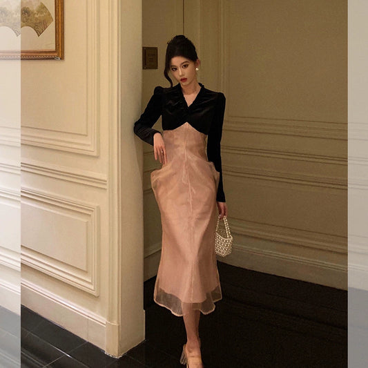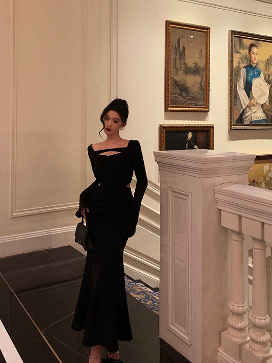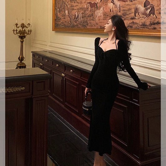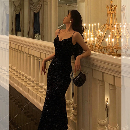 Black sequined suspender dress winter new velvet mermaid dress party dress S5597