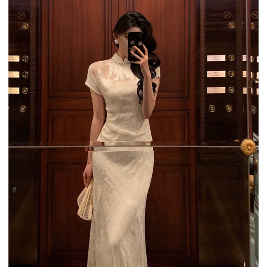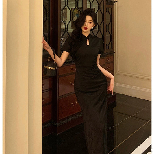 Black cheongsam dress for women new style jacquard satin party dress S5589