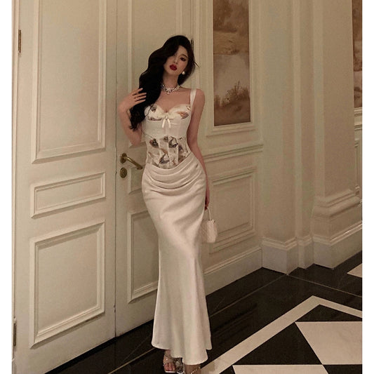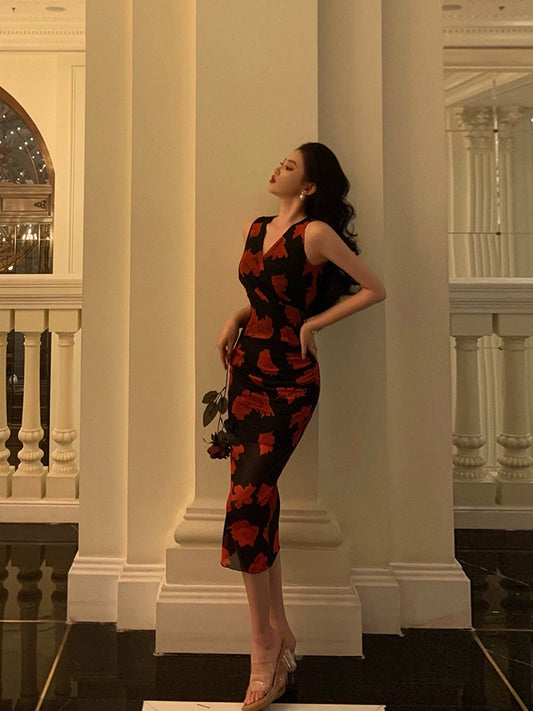 Retro sleeveless dress for women new elegant printed long dress S5581