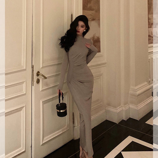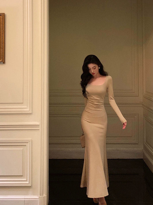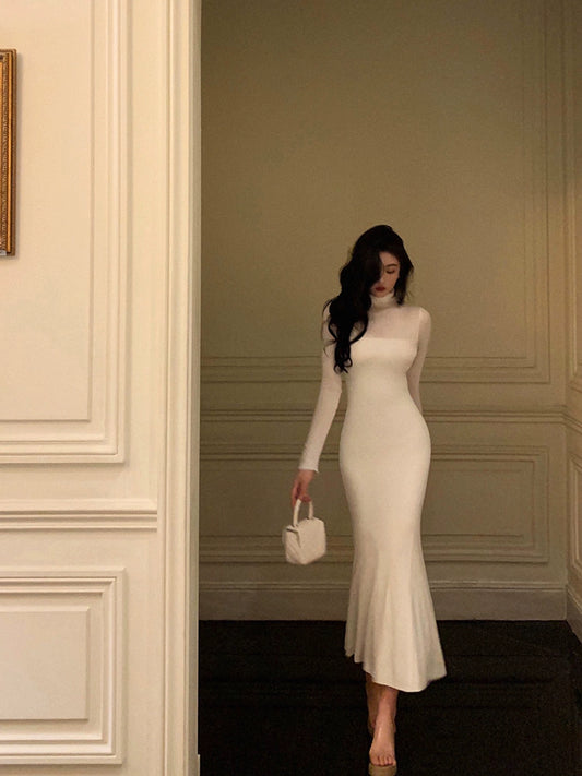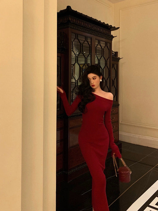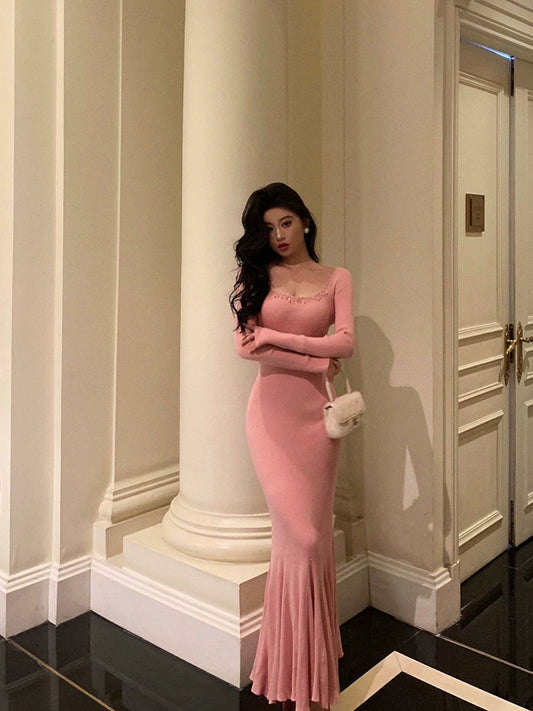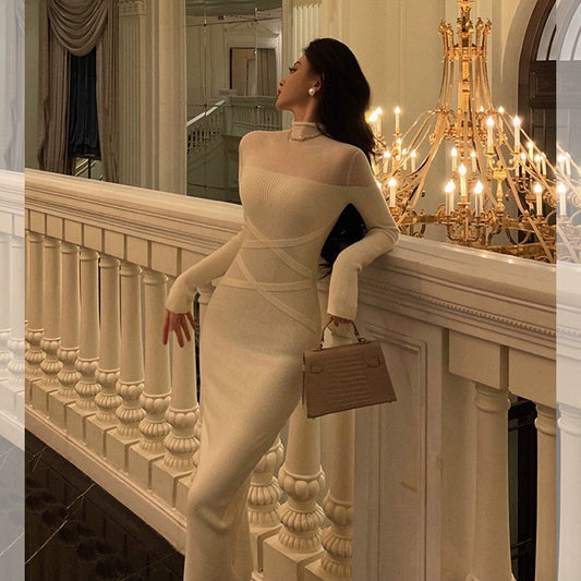 Knitted long-sleeved dress for women new style gentle long dress S5577