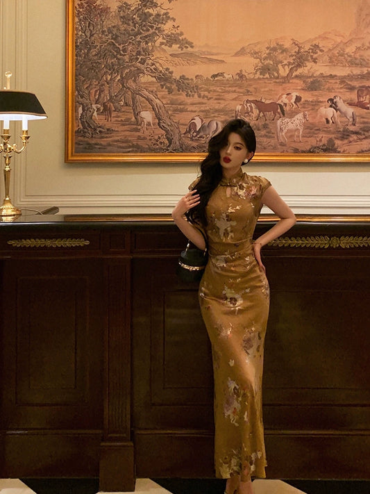 Cheongsam dress women summer new design mermaid long party dress S5579
