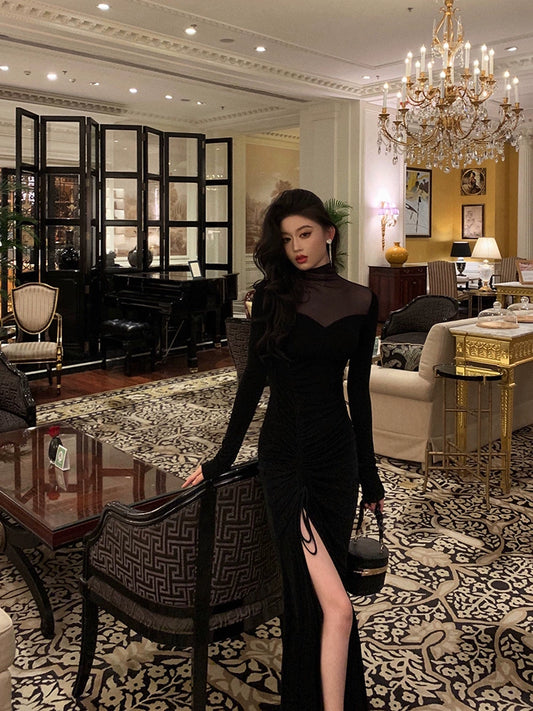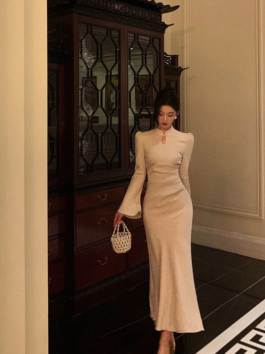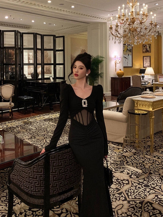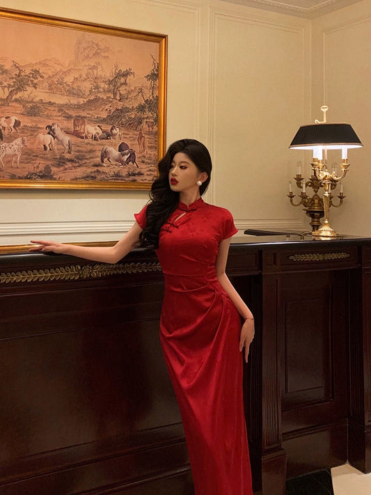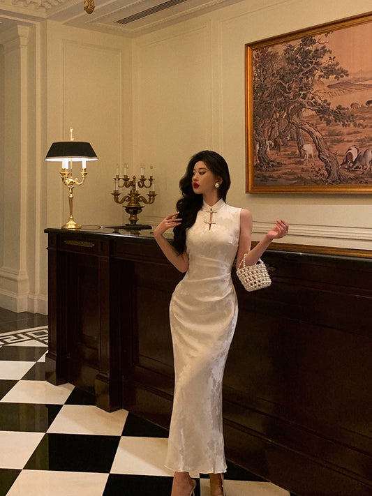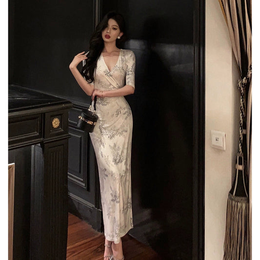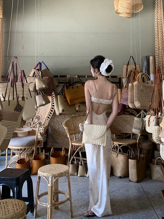 Satin backless holiday suspender dress women's summer long dress party dress S5515