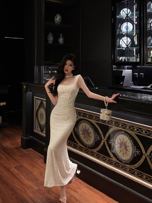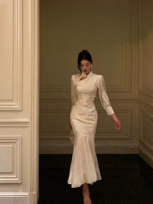 White mermaid dress for women new long evening dress S5499