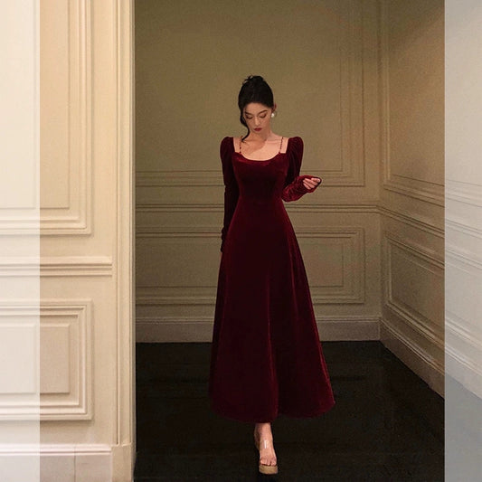 red velvet dress for women new retro long skirt S5484