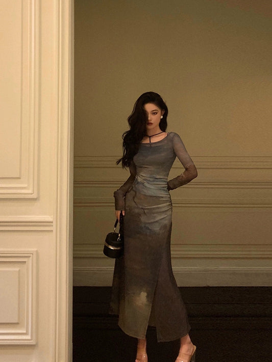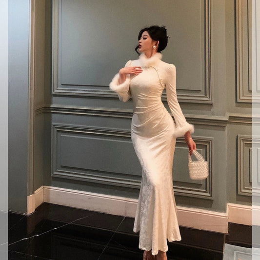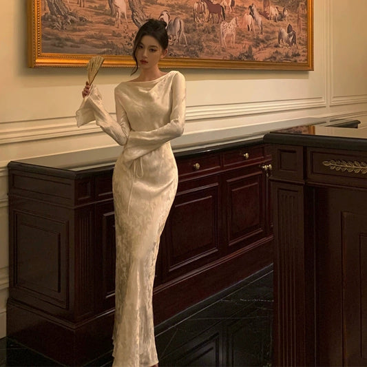 long-sleeved dress for women winter new elegant long skirt S5491