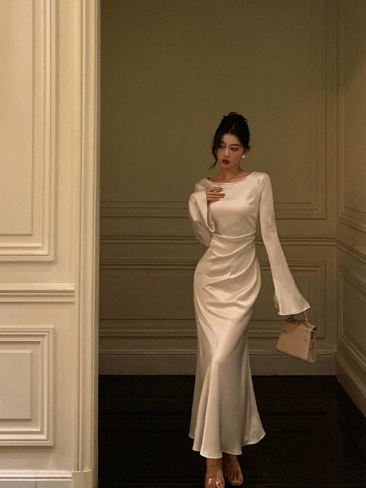 long-sleeved satin dress for women new style long skirt S5489