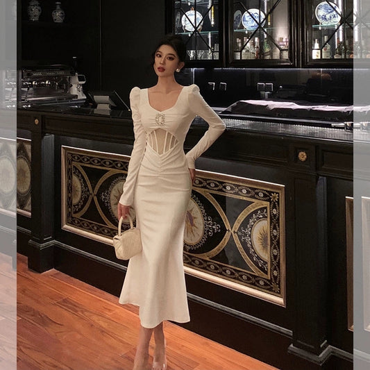 Long-sleeved dress for women new square neck long dress S5494