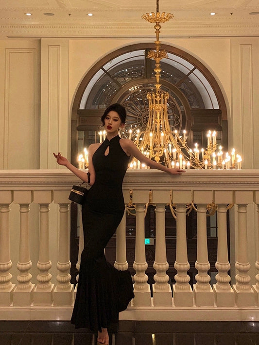 sexy black dress new long skirt S5497