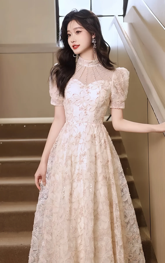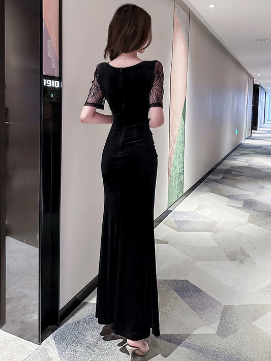 Lace Long Dress Women's Princess Sleeved Square Neck Elegant Evening Dresses S5440