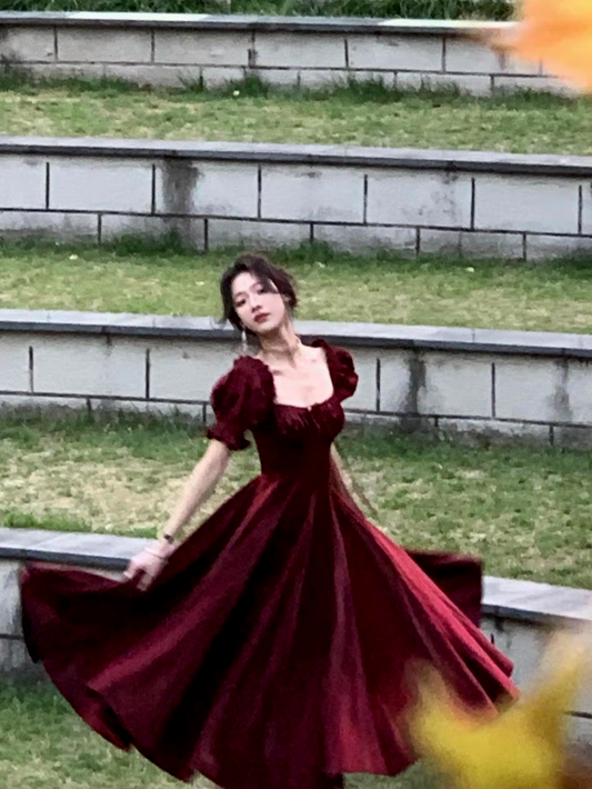Women's Burgundy Evening Party Dress, Summer Elegant Romantic Prom A-line Graduation Dresses S5444