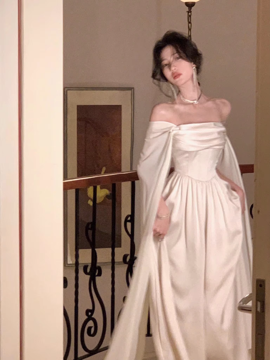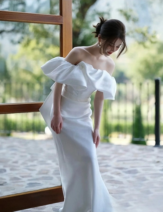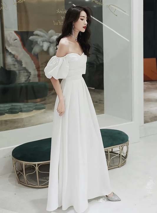 Elegant Off-shoulder White Bridal Gown With Train S5434