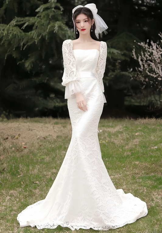 Elegant Lace Long-sleeve Mermaid Wedding Dress S5436