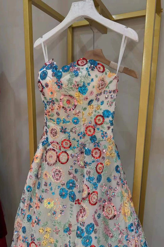 Sparkly New Style Sweetheart Neck Colorful Sequin Prom Dress, Strapless Long Party Gown S5148